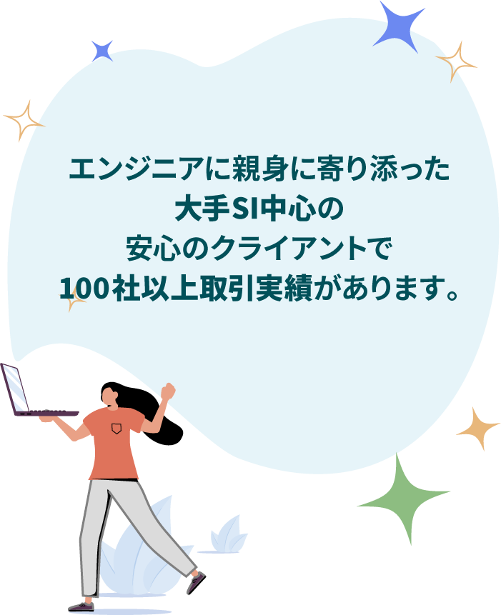 エンジニアの方のご希望を伺い、 適切な企業、案件のご紹介が可能です。